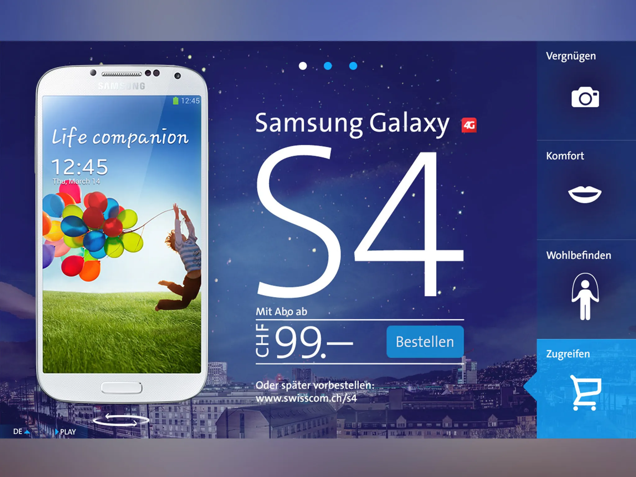 Project made in Entypo.ch agency for Swisscom and Samsung Galaxy S4.