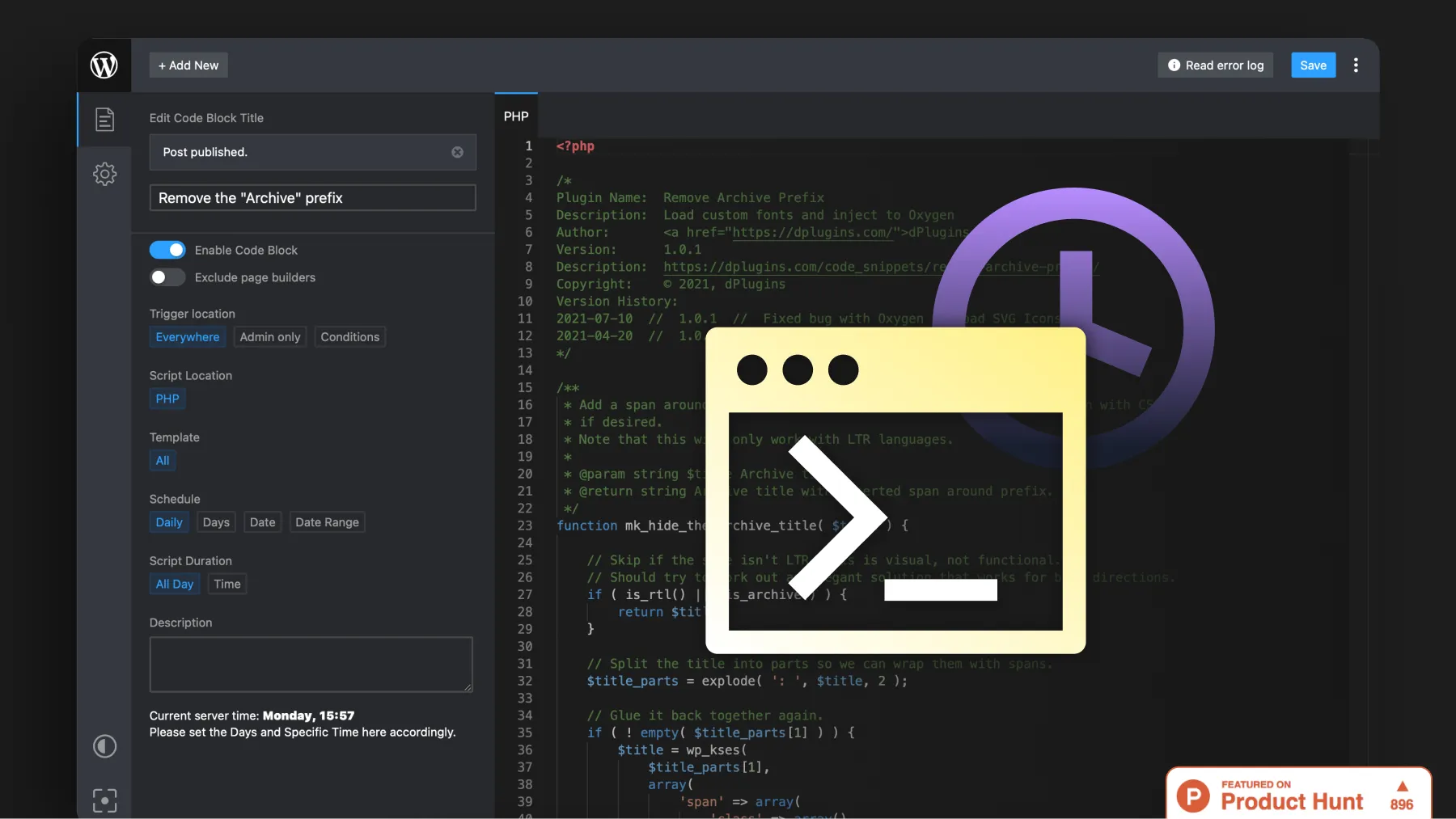 Improved the editing experience. Hot reload inside the editor — no need for multiple browser tabs. Full-screen mode to focus on code without WordPress admin distractions. Better Monaco editor integration for a professional coding environment.